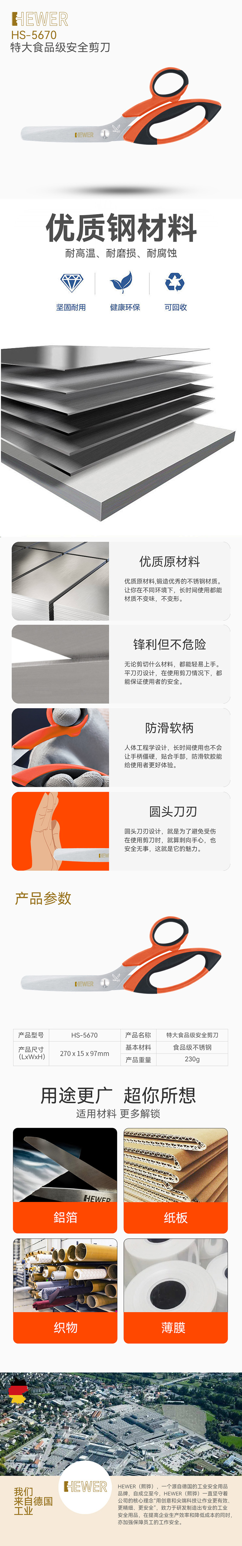 HEWER特大不伤手安全工业剪刀 HS-5670