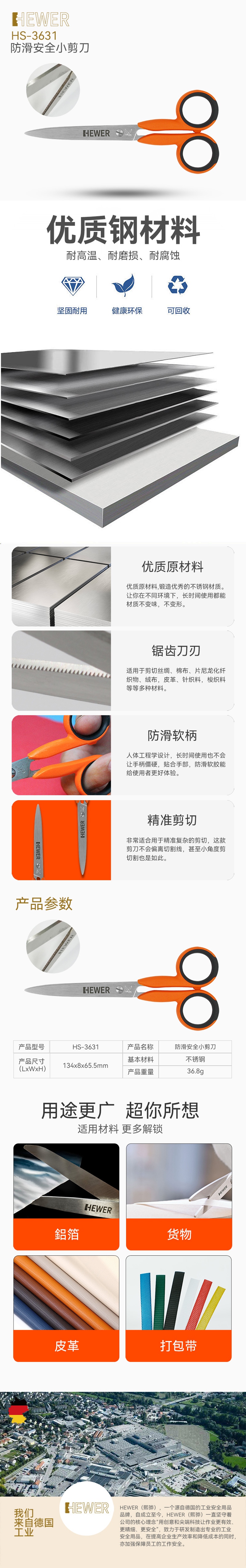 德国HEWER食品级防滑安全工业小剪刀 HS-3631