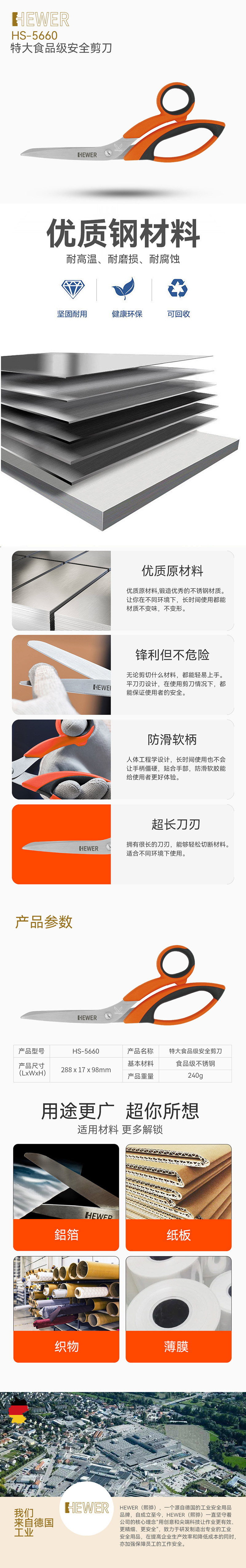 HEWER特大不伤手安全工业剪刀 HS-5660