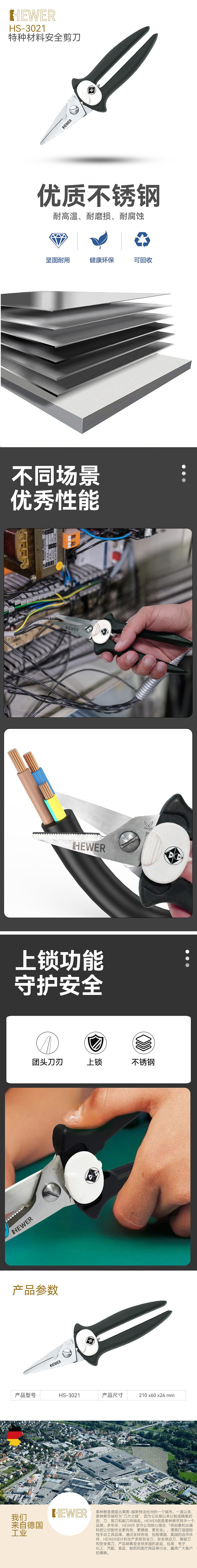 HEWER 长刀刃特种材料安全工业剪刀 HS-3128