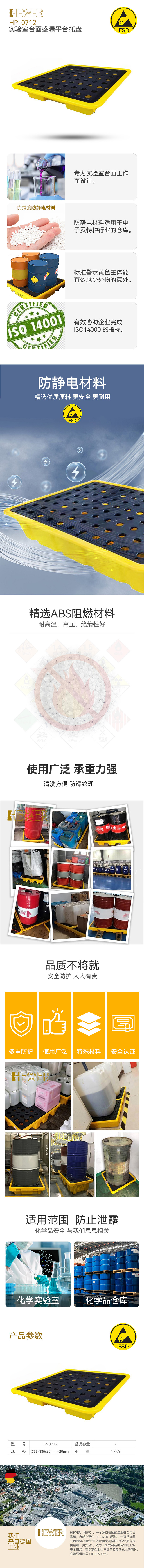 HEWER 防靜电实验室台面塑料盛漏托盘 HP-0712