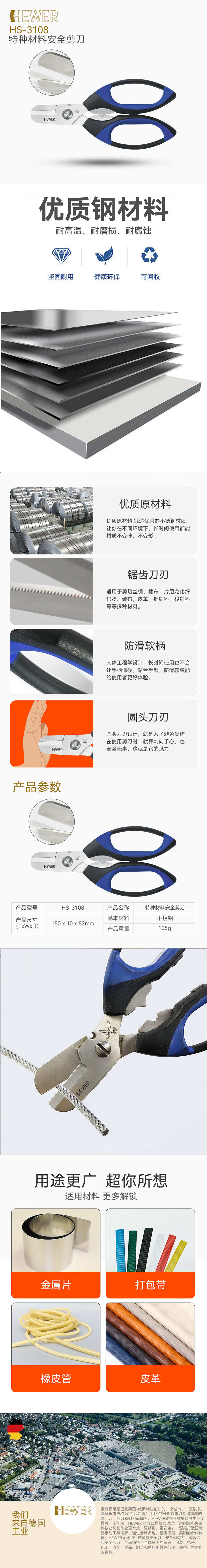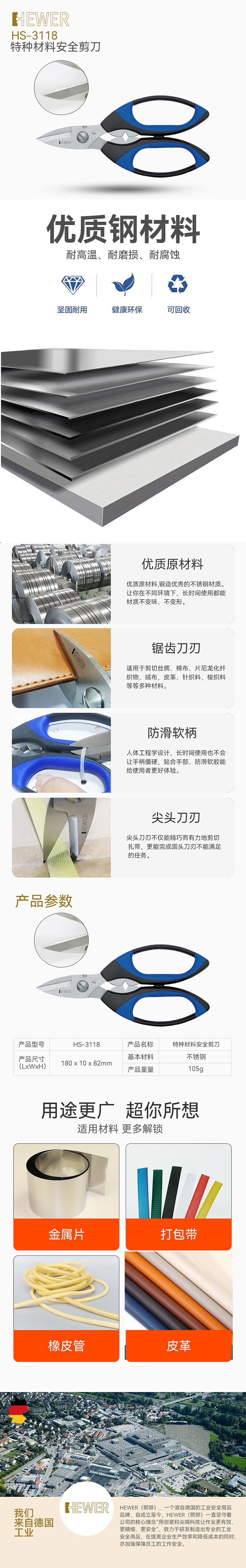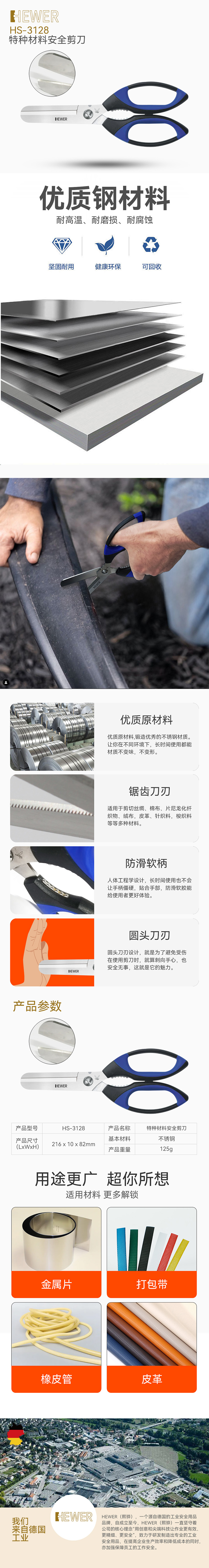 HEWER 长刀刃特种材料安全工业剪刀 HS-3128