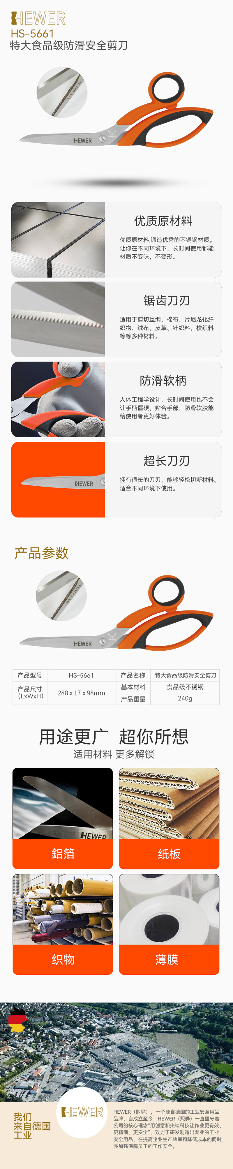 德国HEWER食品级防滑安全工业小剪刀 HS-3631