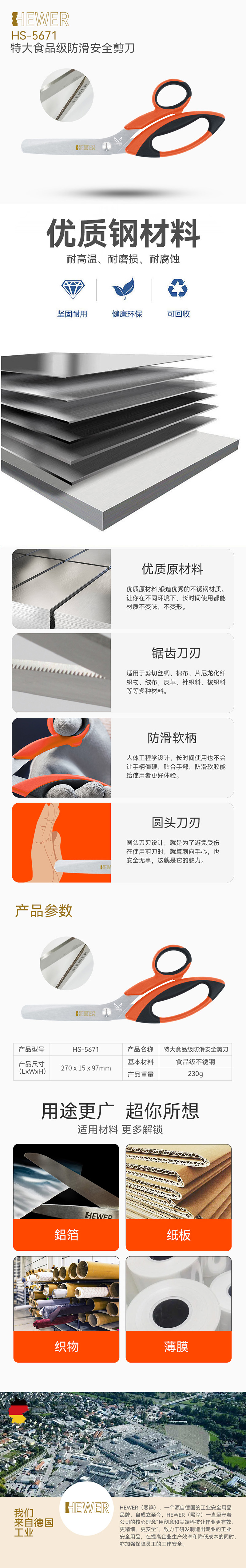HEWER特大不伤手安全防滑工业剪刀 HS-5671